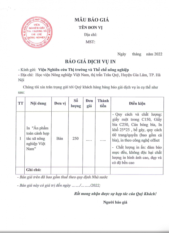 Tin tức Thư mời báo giá Posted on 03/11/202217/07/2023 by admin Học viện Nông nghiệp Việt Nam công bố điểm sàn theo phương thức xét điểm thi tốt nghiệp THPT Đại hội công đoàn Viện Nghiên cứu Thị trường và Thể chế nông nghiệp